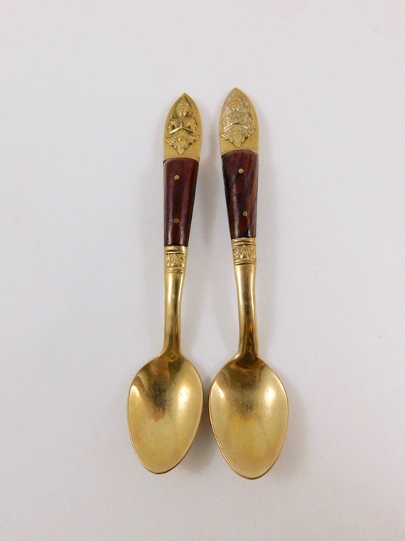 4 Vintage Brass And Wood Demitasse Spoons Made In Thailand 64