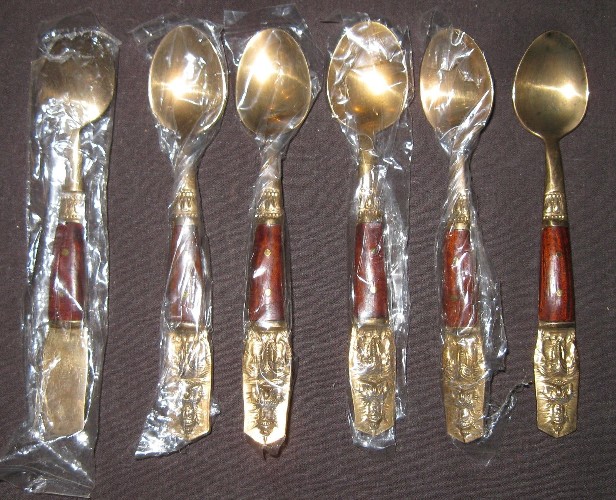 Vintage Thailand Spoons Brass Tone Wood Handles Shopgoodwill Com