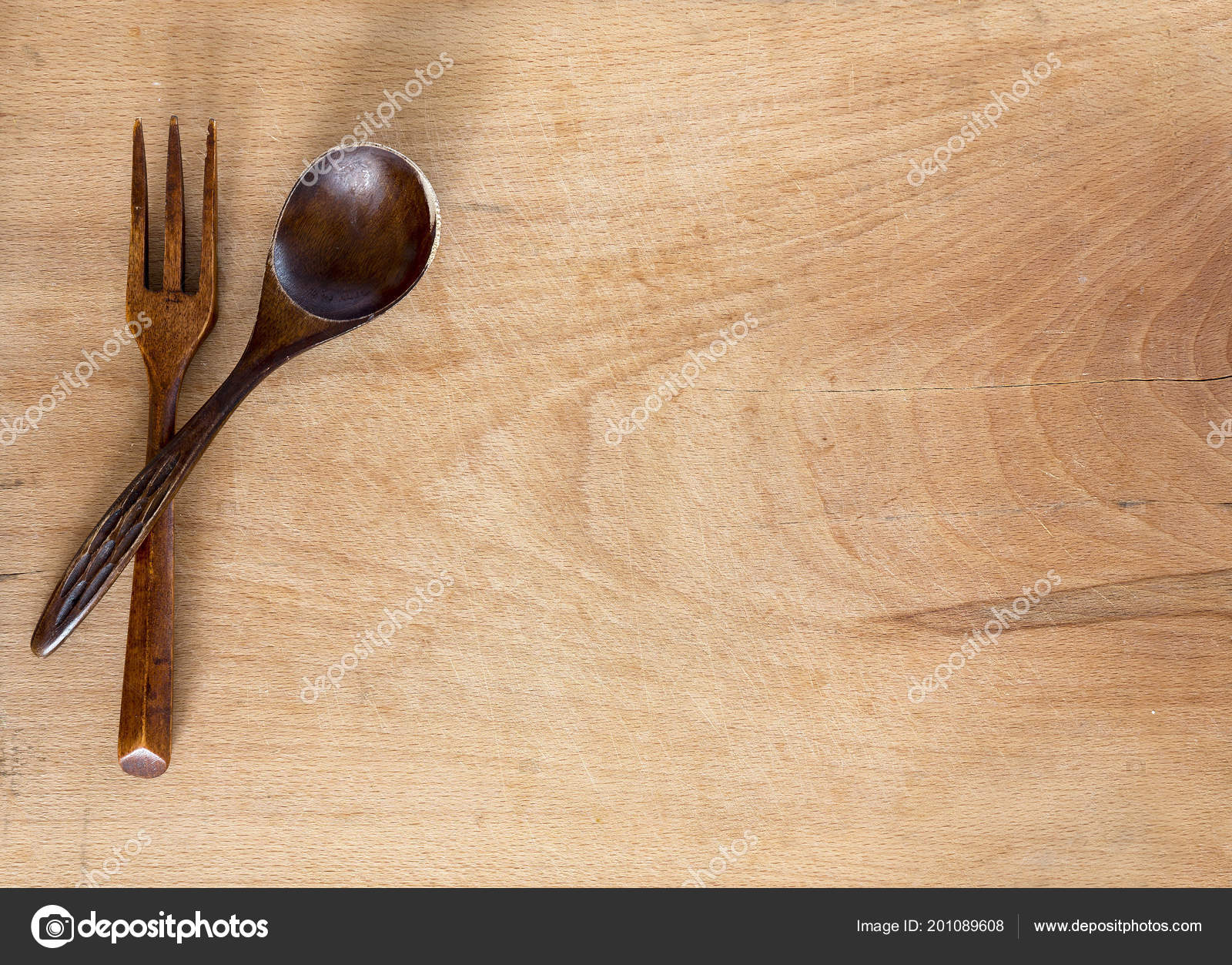 Wooden Spoon Fork Wooden Background Stock Photo C Belish 201089608
