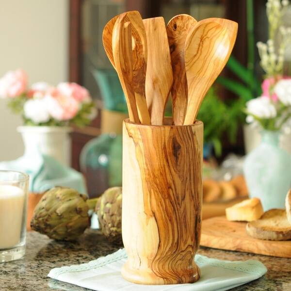 Shop Handmade Olive Wood Utensil Holder And Set Of 5 Kitchen Tools