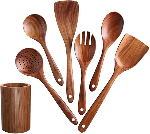 Amazon Com Dcigna Wooden Cooking Utensils Set With Holder