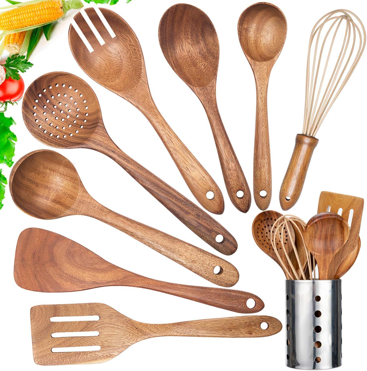 Amazon Com Kitchen Utensil Set Wood 9 Pack Wooden Cooking