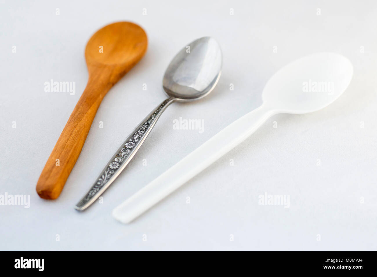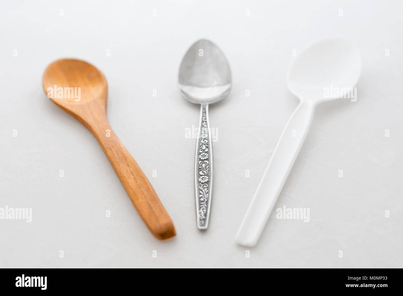Wooden Spoon Plastic Spoon And Metal Spoon Stock Photo Alamy