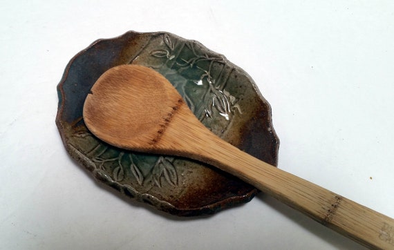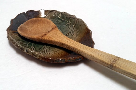 Handmade Spoon Rest Nature Theme Stoneware Etsy